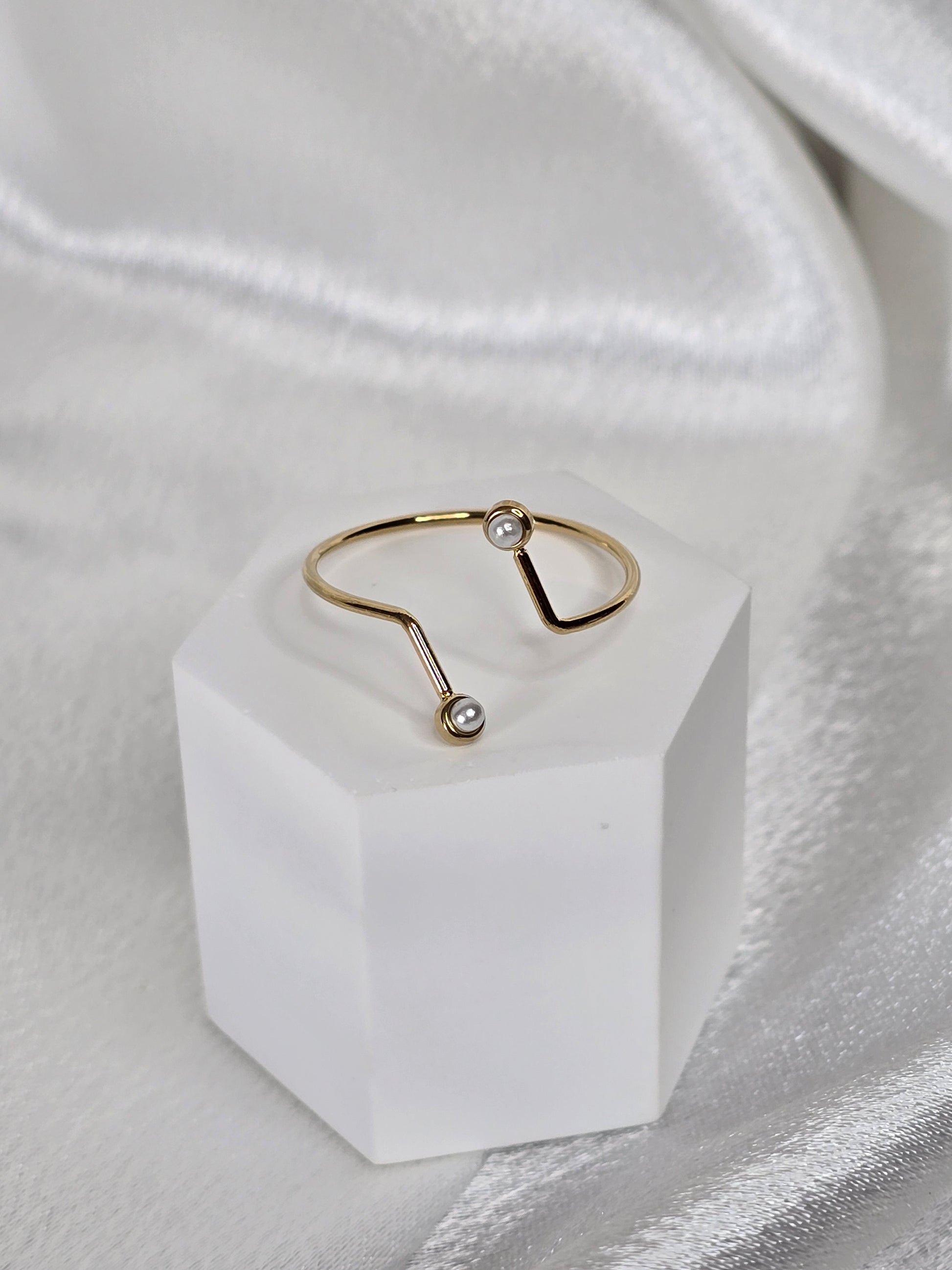 Bague réglable en acier fine avec détail perle