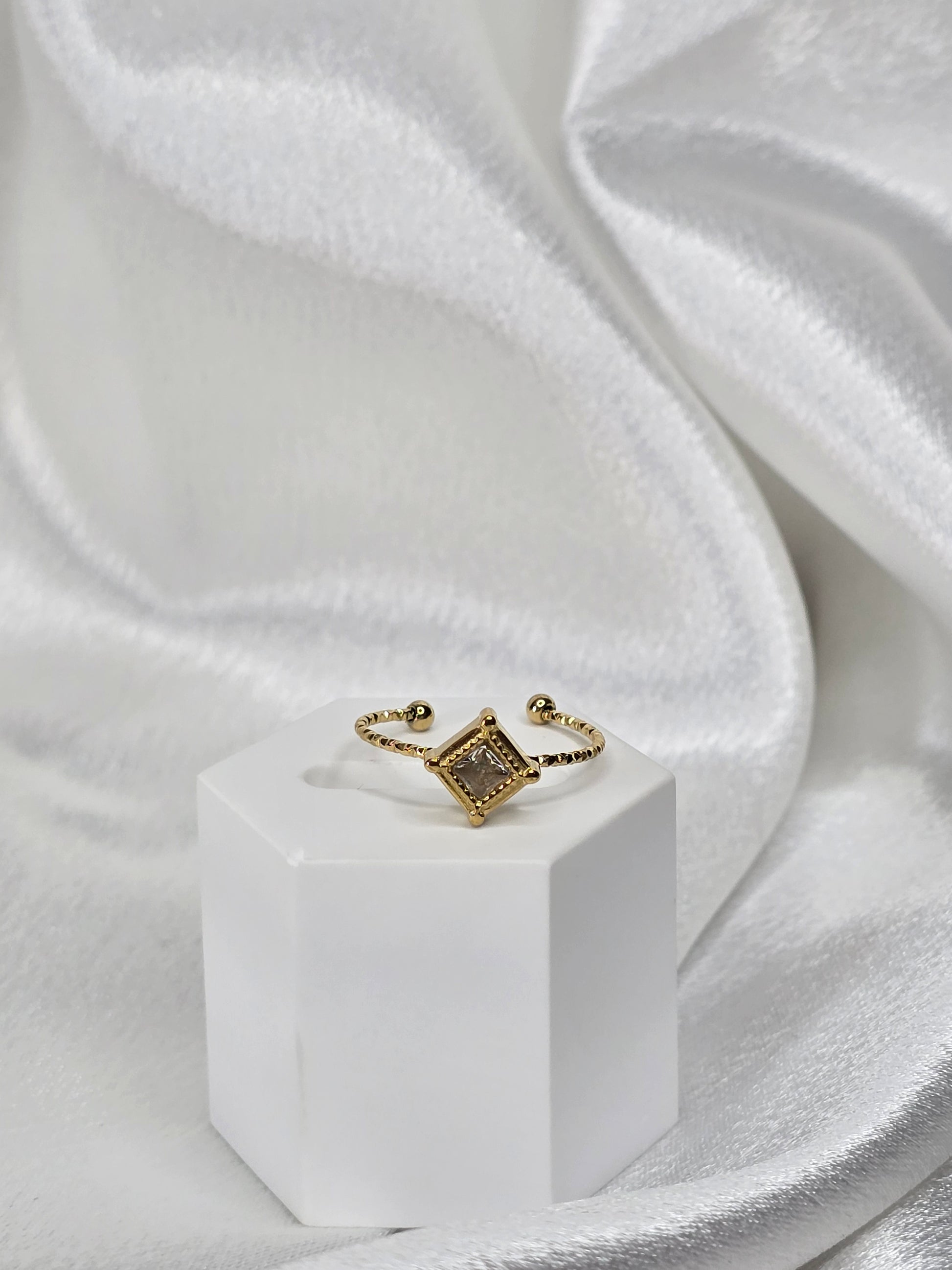 Bague réglable forme losange en acier doré